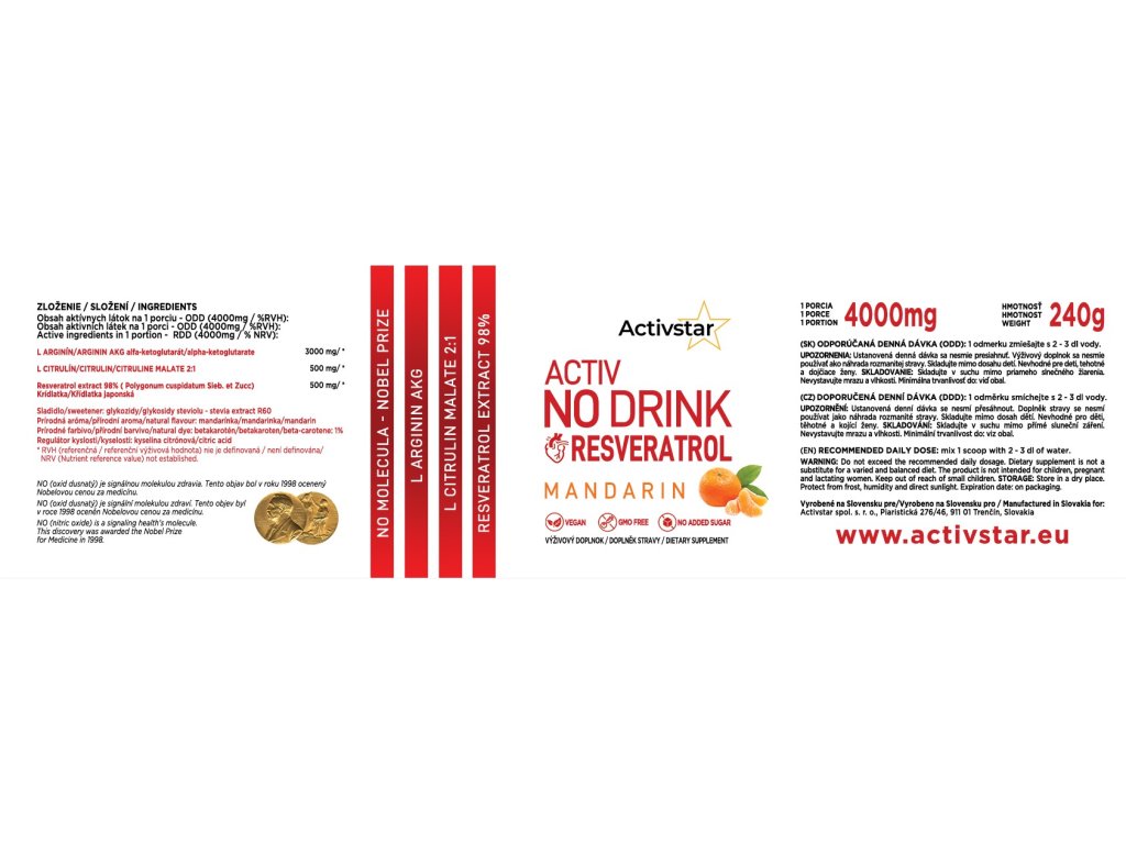 Activ NO je funkčný nápoj, ktorý v sebe spája účinky citrulínu, L-arginínu a resveratrolu – látok známych pre svoj prínos pre krvný obeh, výkon a regeneráciu.