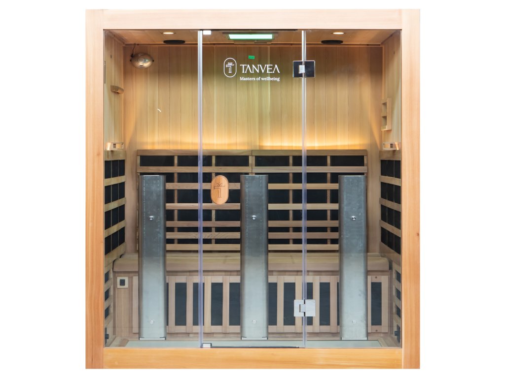 TANVEA Infrasauna King Size pre 3 osoby ponúka ideálnu rovnováhu medzi priestorom, komfortom a špičkovou infračervenou technológiou. Je navrhnutá pre rodiny alebo skupinu troch osôb, ktoré chcú pravidelne využívať benefity infrasaunovania v pohodlí domova.