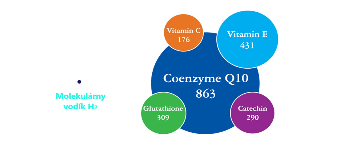 Vodík má selektívne antioxidačné vlastnosti ,čiže odstraňuje len škodlivé voľné radikály, zatiaľ čo ostatné antioxidanti nepôsobia selektívne, čiže odstraňujú tak škodlivé ako i prospešné radikály a tým spôsobujú nerovnováhu v tele. Po neutralizácii voľných radikálov nezanecháva žiadne odpadové produkty. Vodík je najmenšia molekula, ktorá sa ľahko dostane do všetkých buniek, teda aj do mozgu, svalov a kostí. Hmotnosť molekulárneho vodíka H2 je iba 2 g/mol oproti Vitamínu C, ktorý má 176,2 g/mol alebo Coenzym Q10 až 863g/mol
